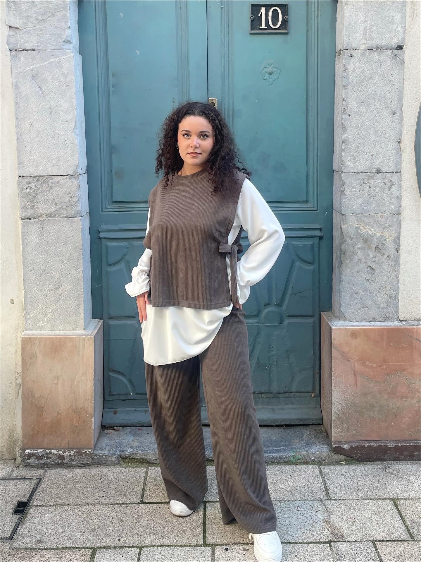 Adoptez le confort et l’élégance avec cet ensemble effet velours composé d’un pantalon fluide, d’un gilet et d’une chemise longue assortie. Une tenue complète, douce au toucher et ultra-tendance, parfaite pour un look à la fois habillé et décontracté.